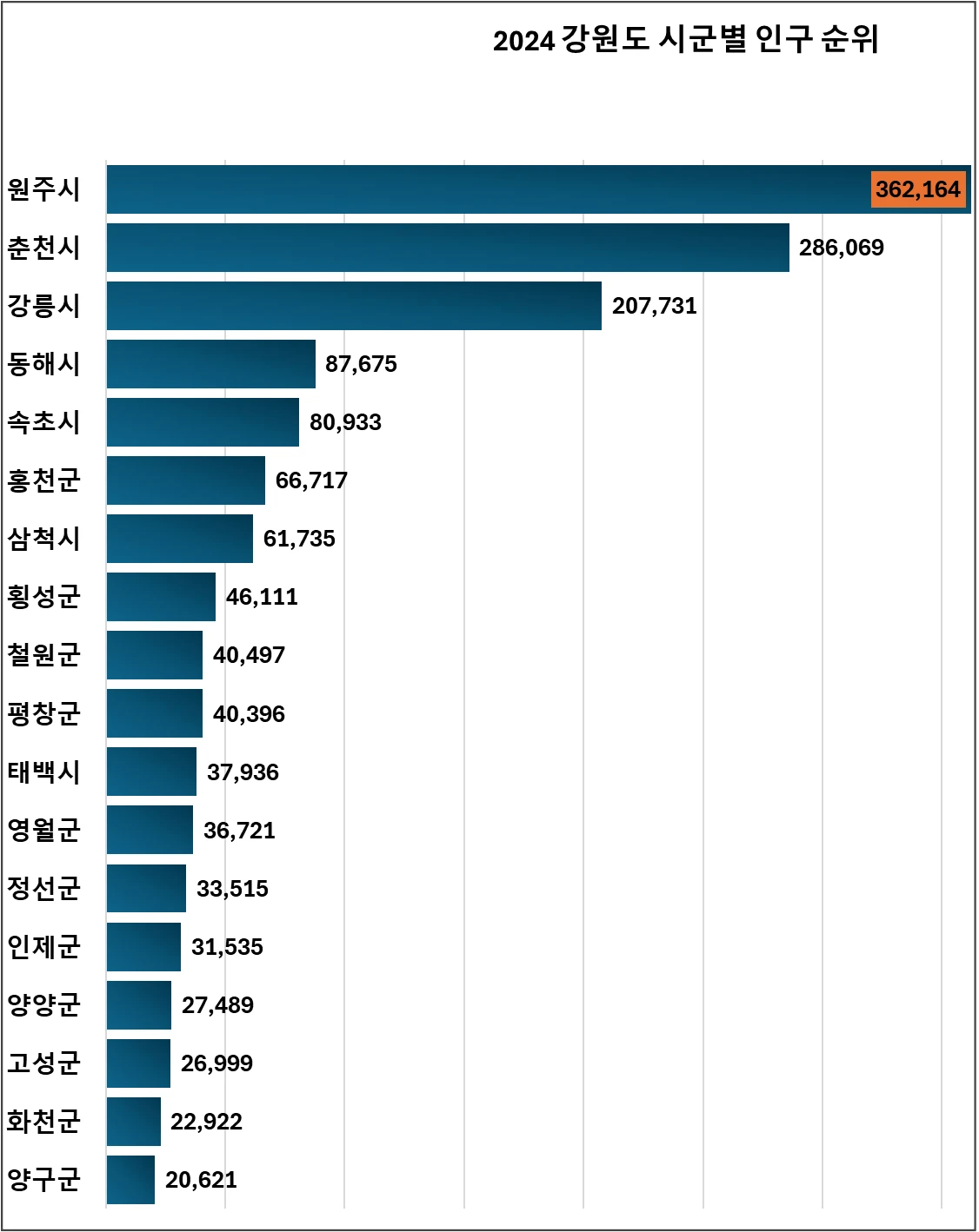 2024년 강원도 시군별 인구순위